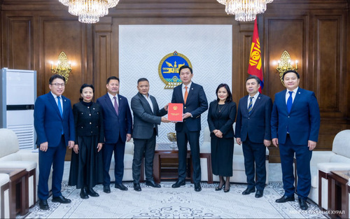Монгол Улсын Их Хурлын дарга Н.Учралд өнөөдөр (2025.11.25) Улсын Их Хурлын гишүүн, Аж үйлдвэр, эрдэс баялгийн сайд Г.Дамдинням нар Стратегийн ач холбогдол бүхий бүтээгдэхүүний хангамж, нийлүүлэлтийг дэмжих тухай хуулийн төслийг өргөн мэдүүлэв.