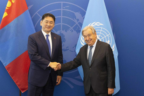 Монгол Улсын Ерөнхийлөгч У.Хүрэлсүх НҮБ-ын Ерөнхий нарийн бичгийн дарга Антонио Гутеррештэй НҮБ-ын Төв байранд уулзав.